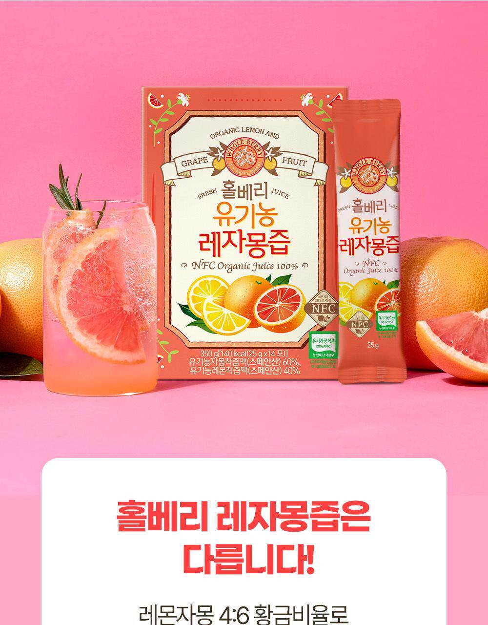 WholeBerry Organic Lemon Grapefruit Juice NFC Not 1 box