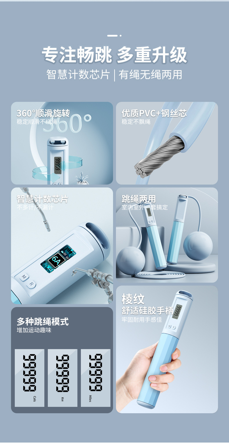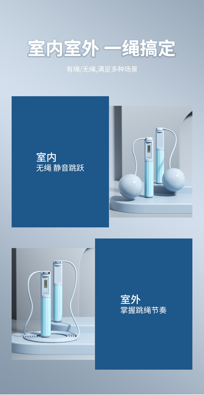 Wire Jump Rope Cordless Counter Intelligent Light Blue - Long Rope 1 個