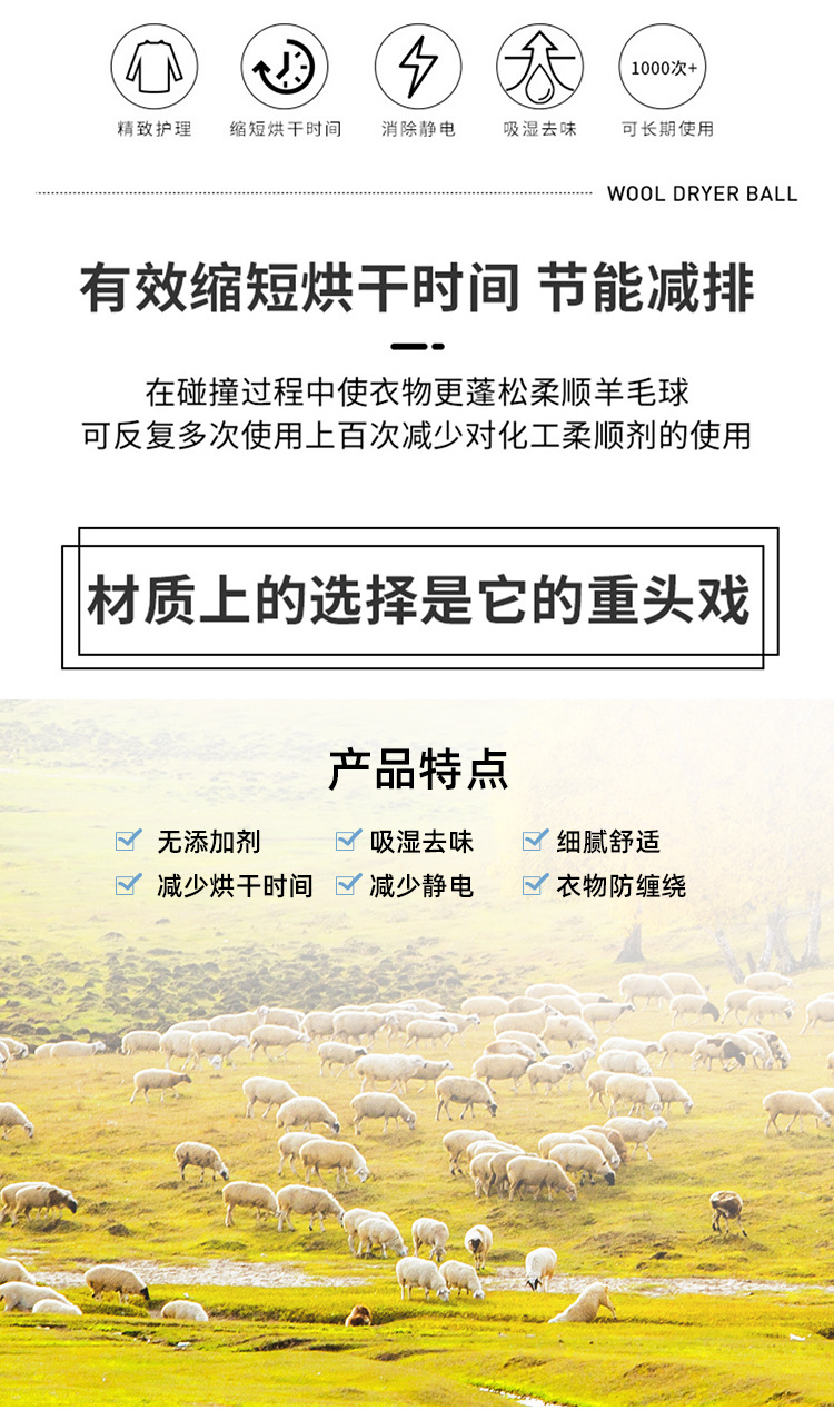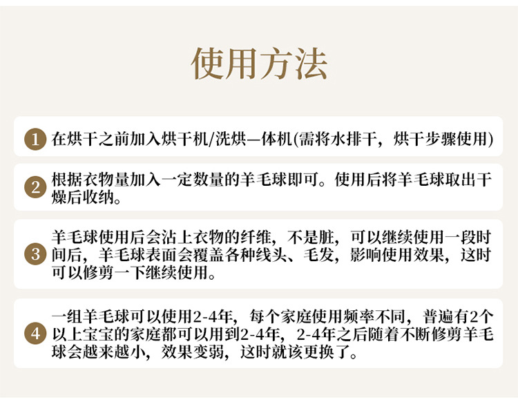 毛氈球 羊毛烘衣球 防纏繞 烘乾機羊毛球 3只裝 1 份