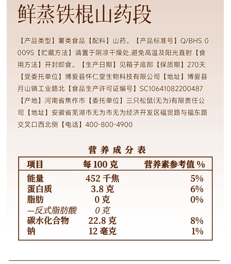 【三隻松鼠】即食鐵棍山藥1盒約10-12袋 400 克