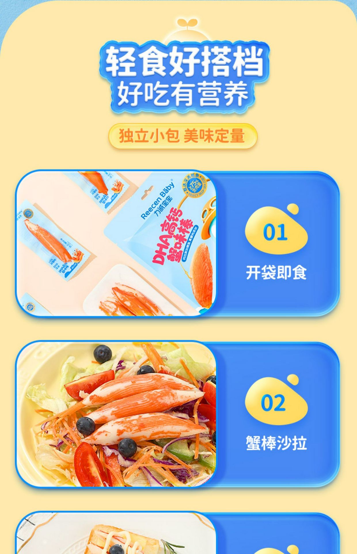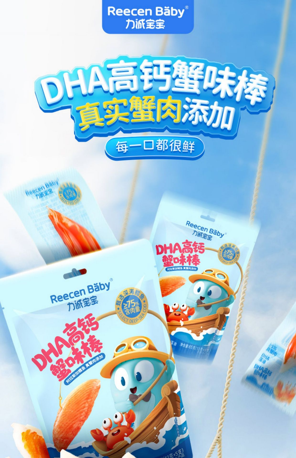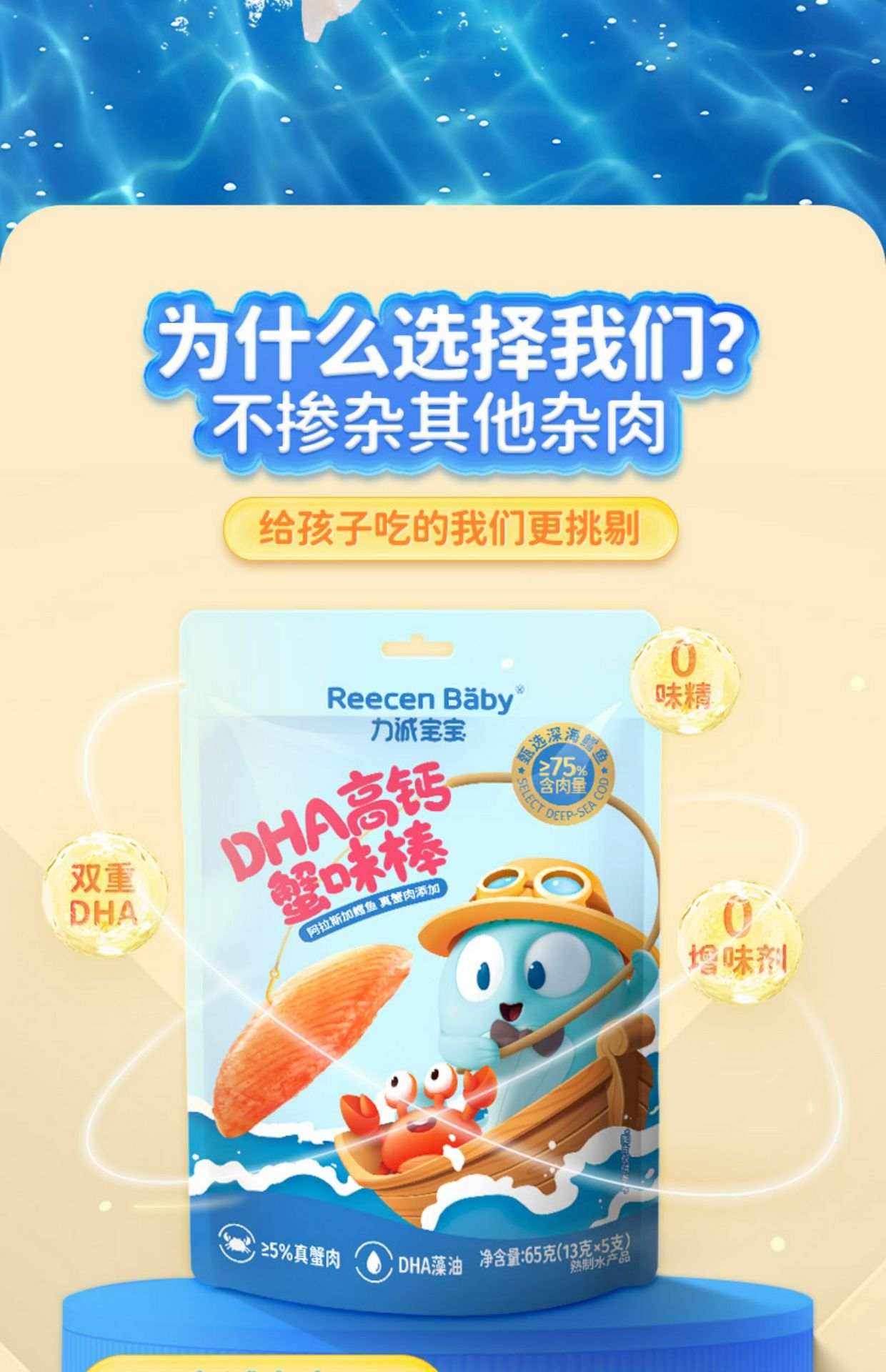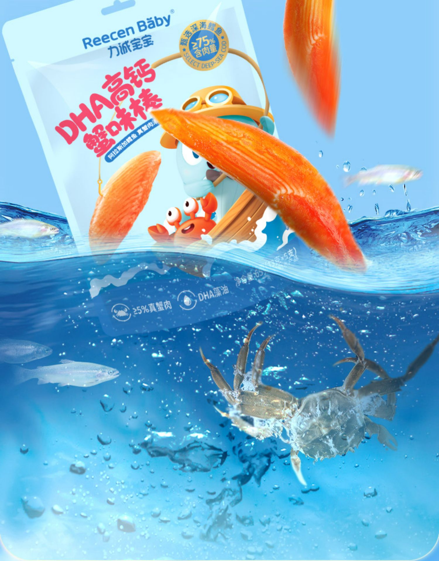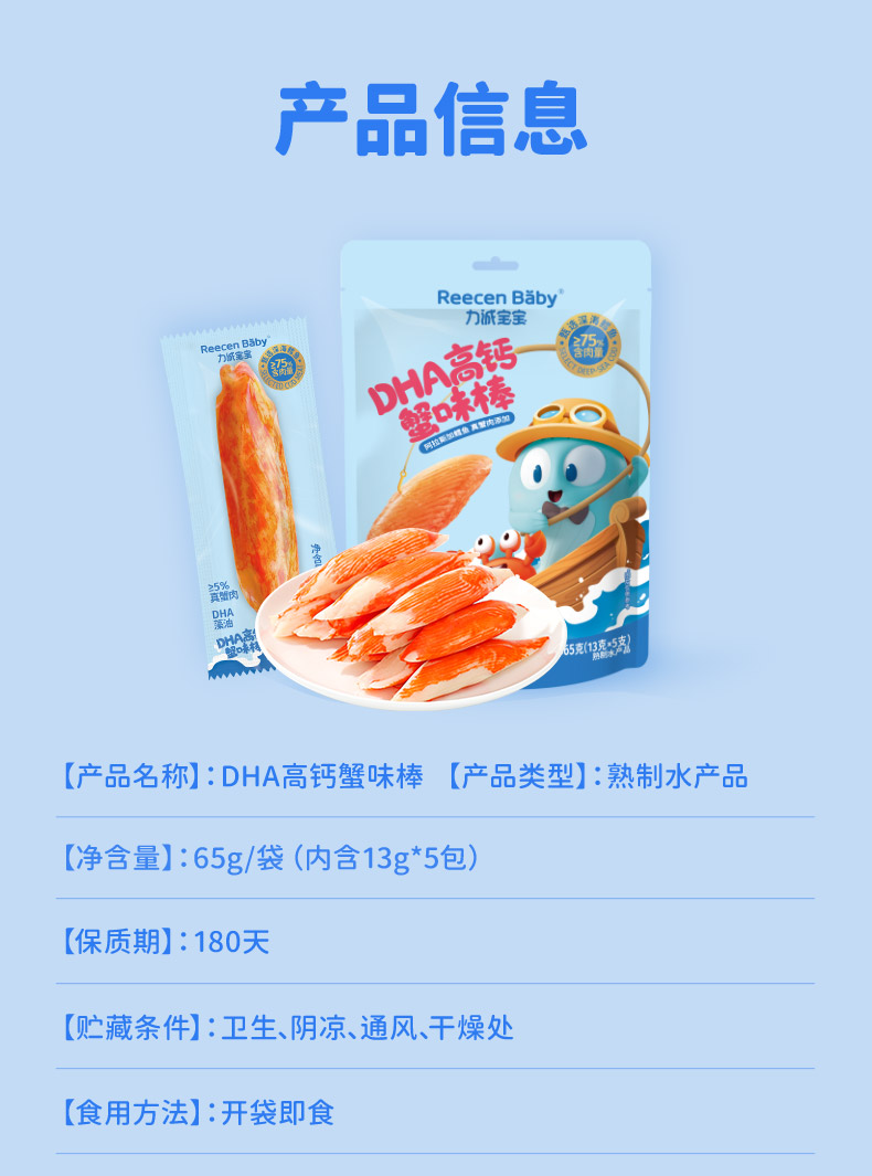 【力诚宝宝】DHA高钙蟹柳 儿童高蛋白海味零食1袋 65 克
