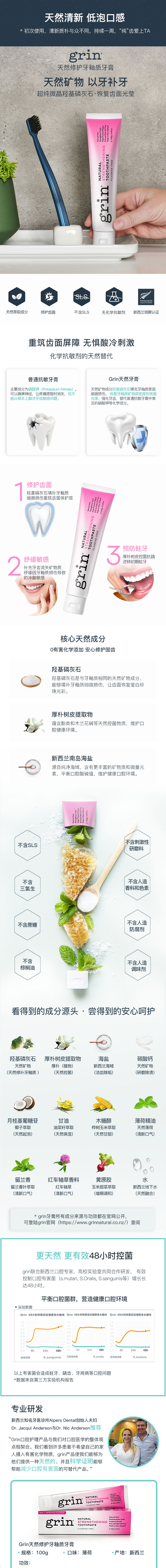 grin 100% Natural Strengthening Toothpaste 3.53 온스