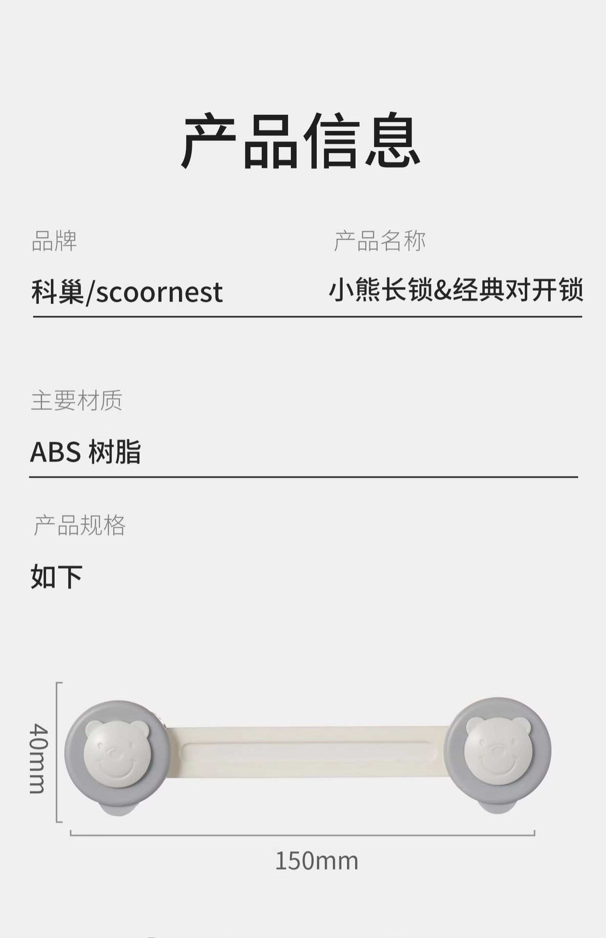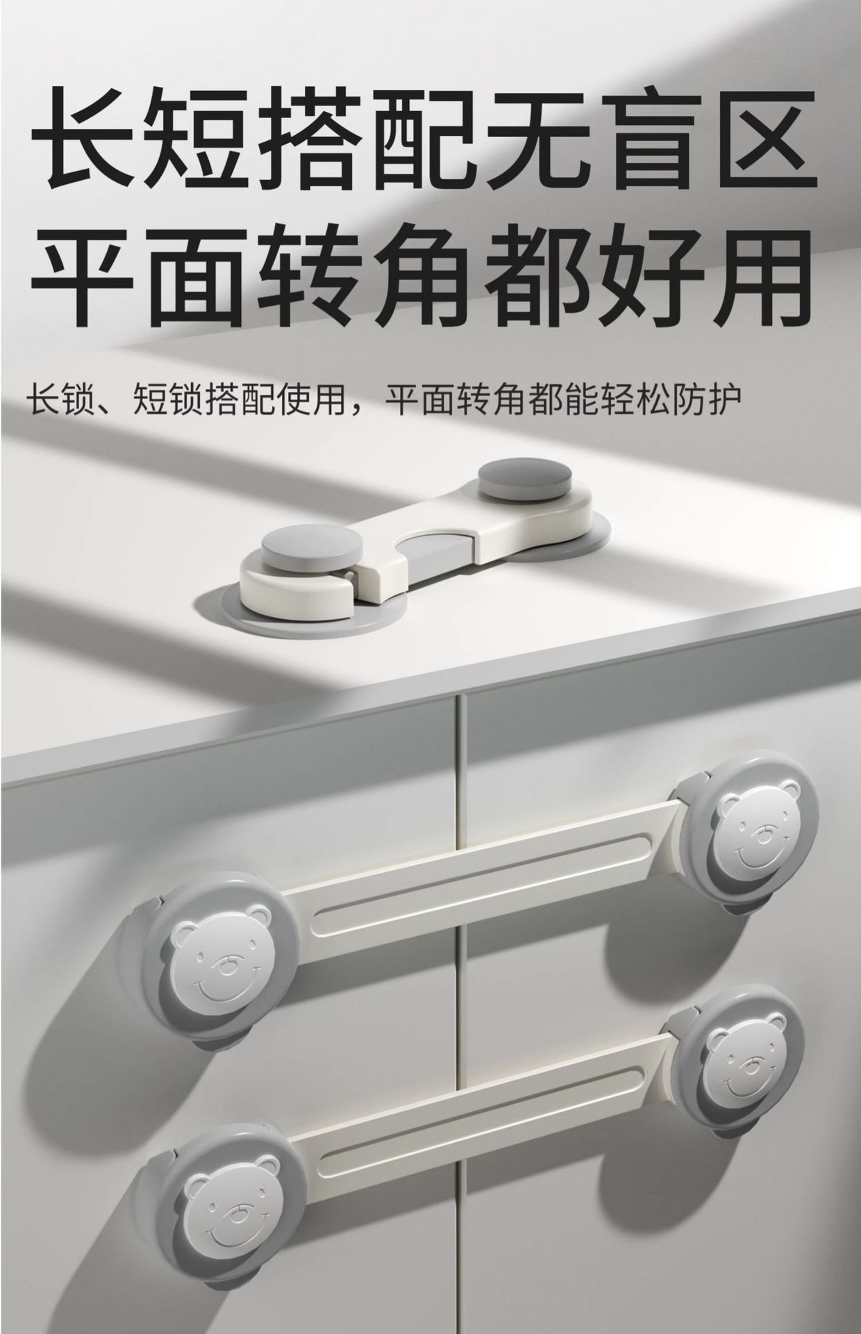 【科巢】婴儿童锁扣抽屉扣防宝宝夹手 长锁 星略灰 2 个