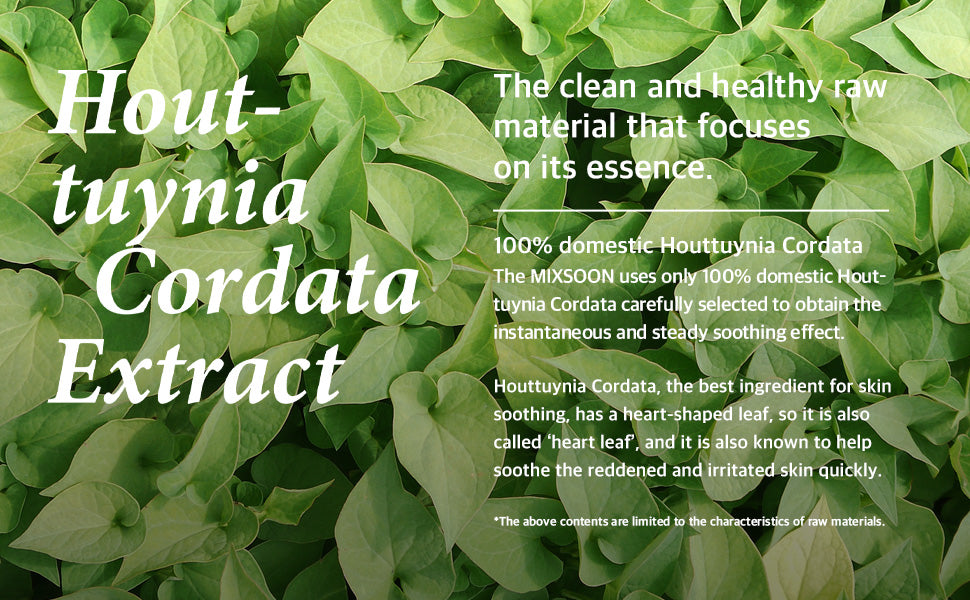 - 100% Heartleaf (Houttuynia Cordata) Extract. No alcohol. No artificial fragrance. A reliable EWG green grade essence that is also supplied to postpartum care centers, facials and spas. (*Results may differ based on the individual, so it is essential that you do a patch test before use.)