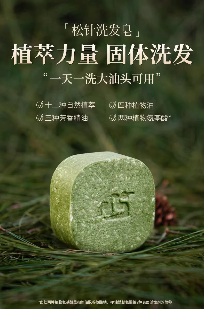 松針洗髮皂1塊氨基酸洗頭皁側柏葉手工植物草本香皂 1 个
