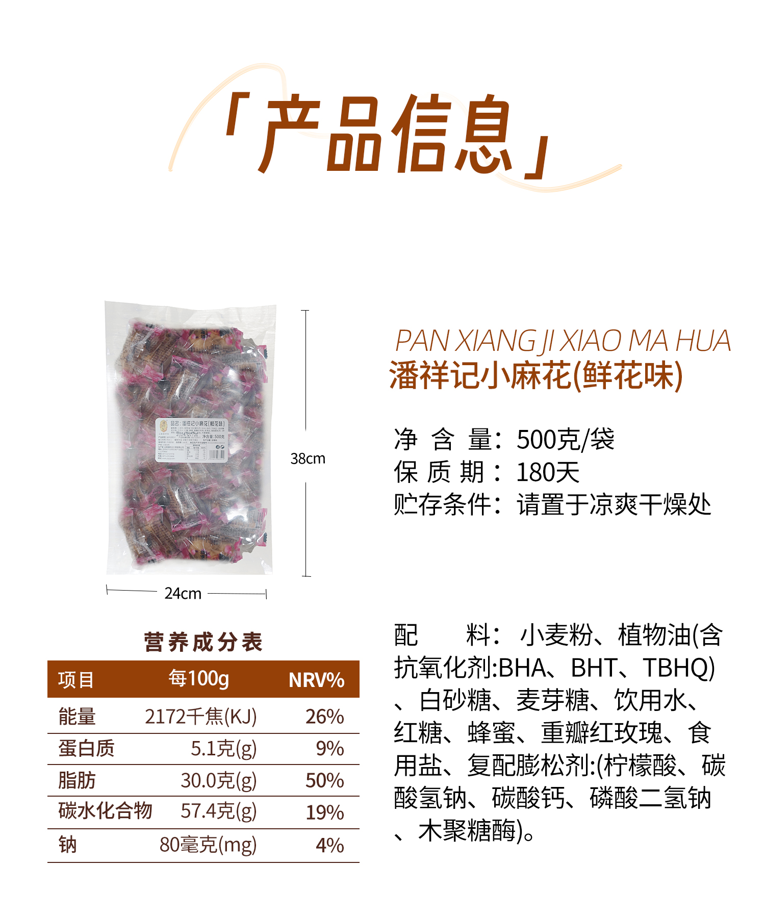 【潘祥记】云南特产 玫瑰味小麻花 1袋 500 克