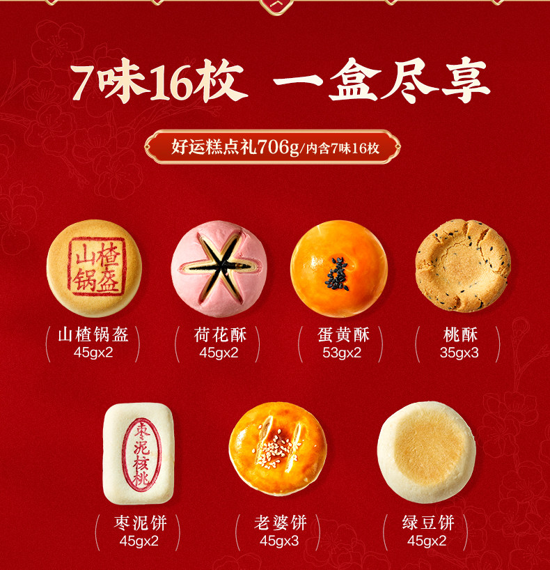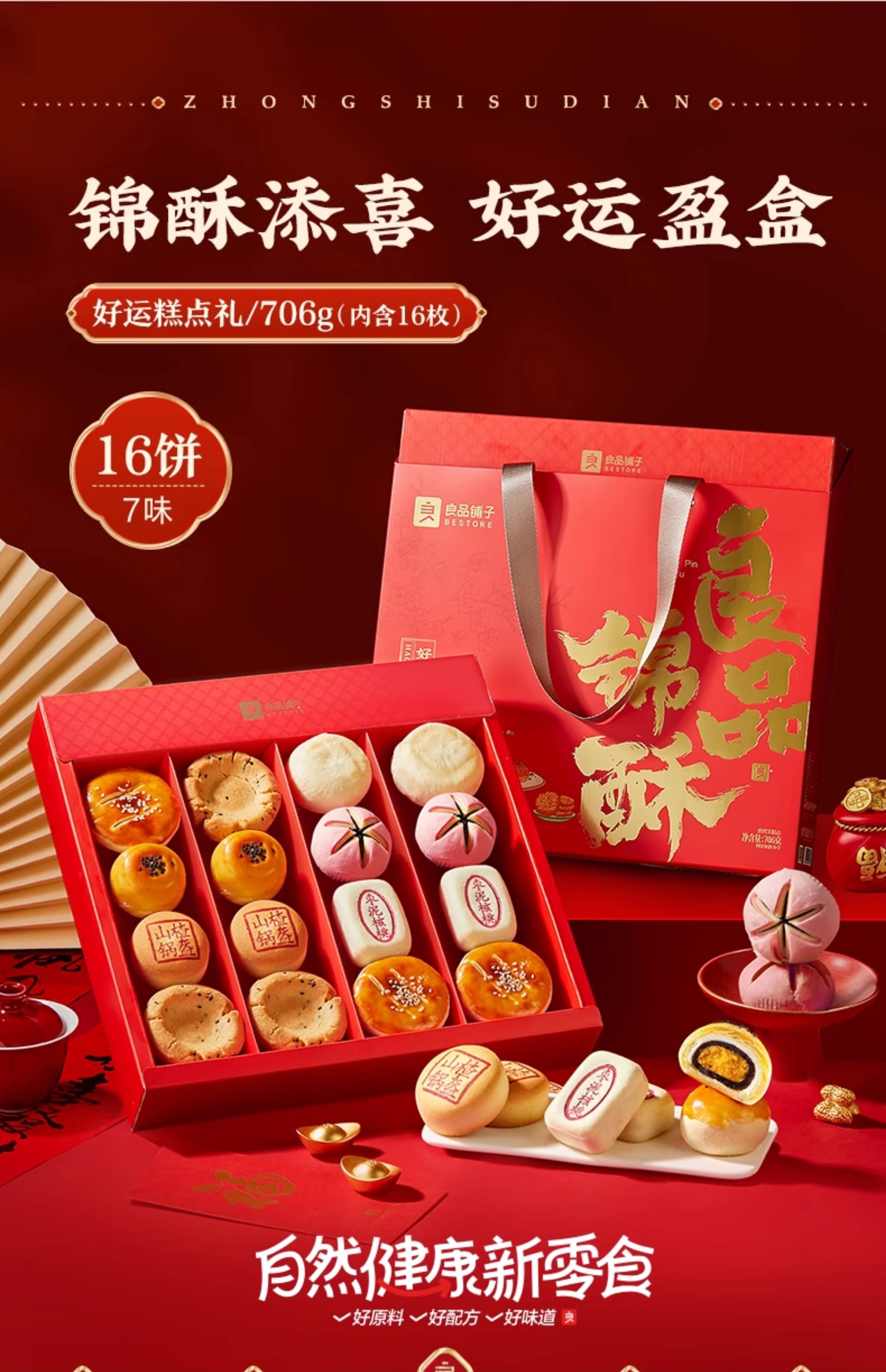 【良品鋪子】傳統中式糕點禮盒 一盒 16枚7味 706 克